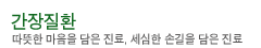 °£Àº ħ¹¬ÀÇ Àå±â·Î ÀÏ´Ü Áõ»óÀÌ ¹ßÇöµÇ´Â °æ¿ì´Â Àüü °£ÀÇ 3/4Á¤µµ ¼Õ»óÀÌ ÀÖ´Â °æ¿ì°¡ ´ëºÎºÐÀ¸·Î Æò¼Ò¿¡ Á¤±âÀûÀÎ °Ç°°ËÁø°ú »ýȰ½À°üÀ¸·Î Á¶±â¿¡ Áúº´À» ¿¹¹æÇϰí Áø´Ü¹Þ´Â °ÍÀÌ Áß¿äÇÕ´Ï´Ù. | | |